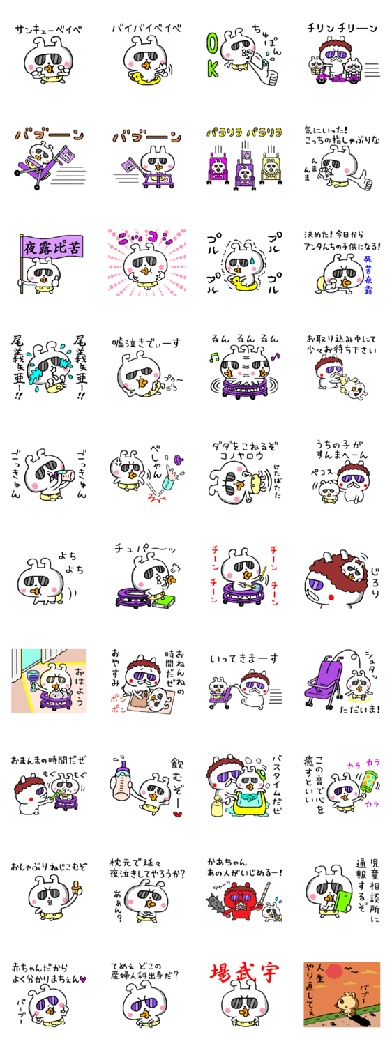 ちょいワルうさぎシリーズから強がりおませな、ちょいワルベイベが登場♪ 赤ちゃんながらもいっちょ前な発言で、紫ベビーカーと紫歩行器を乗りこなす!シクヨロだぜベイベw