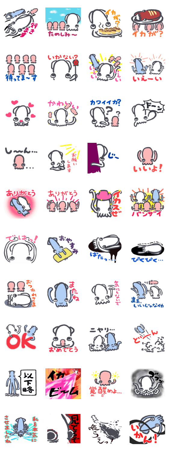 イカに特化したスタンプです。日常用からネタ用まで幅広くご利用いただけます。