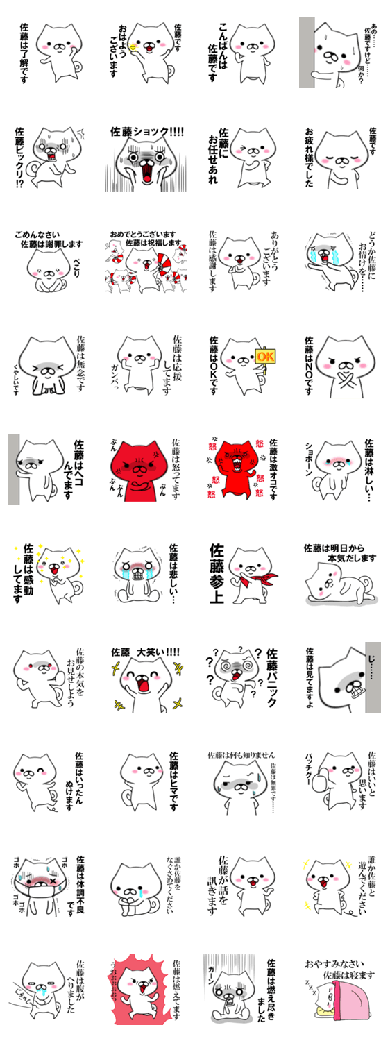 白い柴犬のスタンプです。名前をネタにした、いぬのスタンプで、佐藤さん専用です。