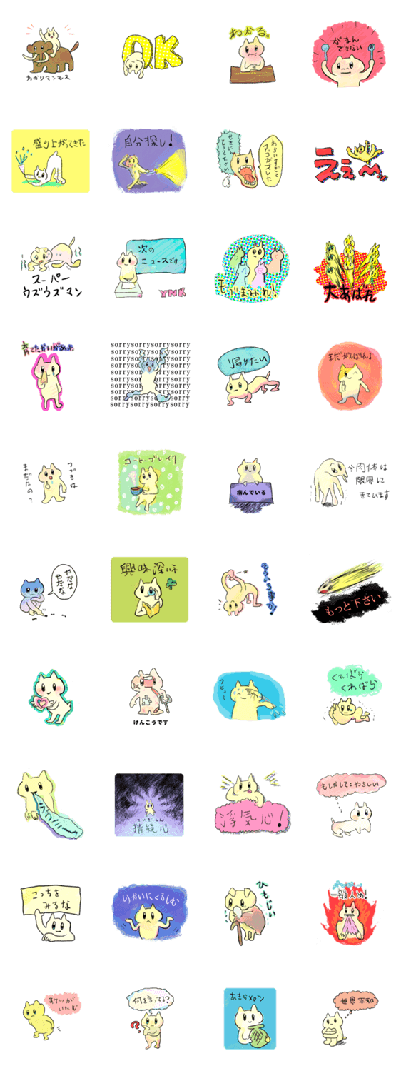 クレイジーで体の柔らかいヨメネコがぐねぐねするよ。オタクのあなたにピッタリのスタンプ。