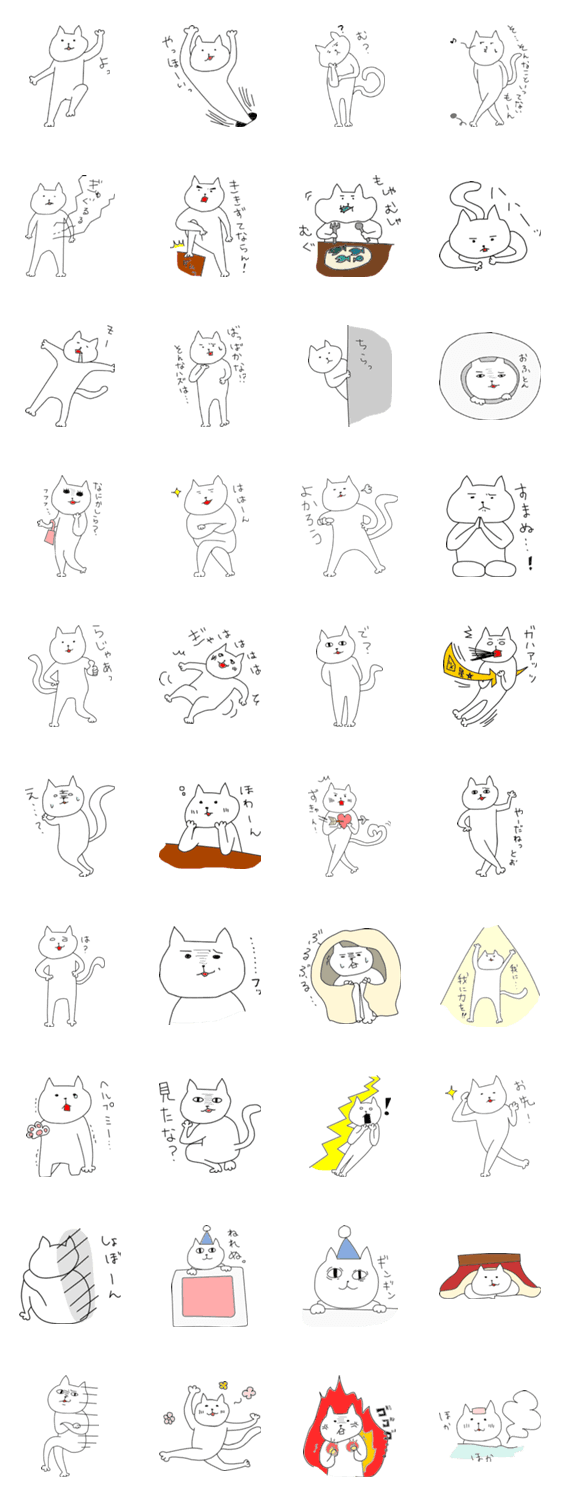 白ネコのあいうえお・・・ってるスタンプ