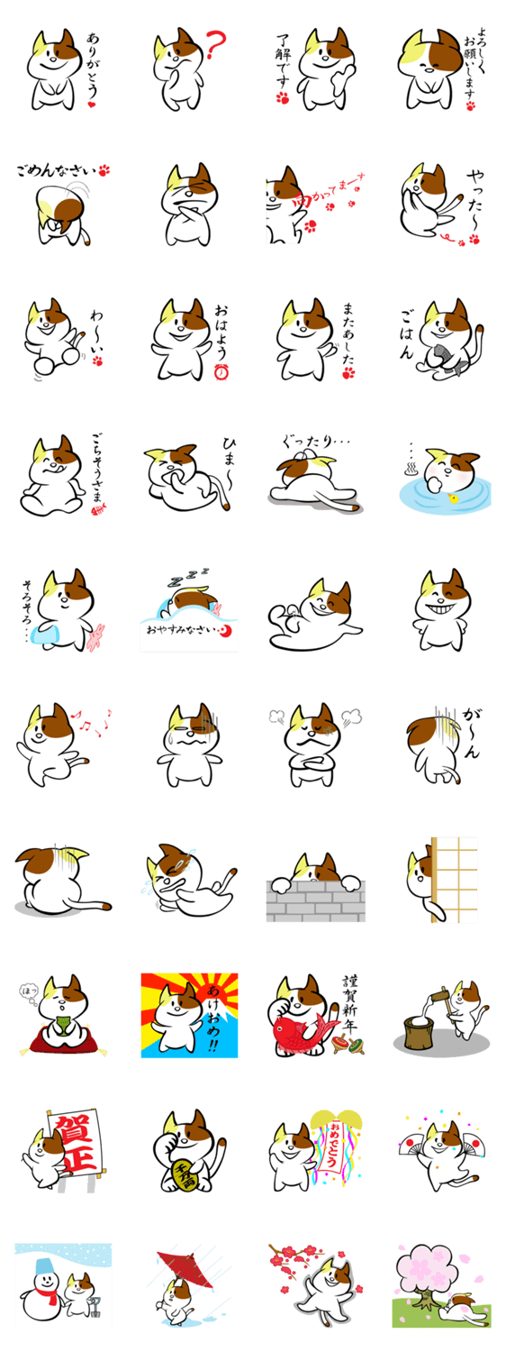 みけ猫のたまちゃんがたまゆらの思いをあなたに代わって届けます。日常や季節の挨拶など使える場面が一杯のスタンプです。