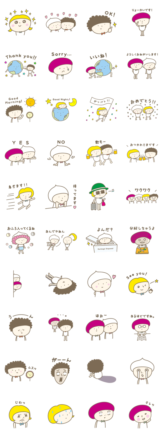 | スタンプ説明 | 株式会社フォレストバイオテックからLINEスタンプが登場! “地球からゴミ問題を消していく”を使命に生きる4兄弟の、日常で使えるかわいいスタンプです。 |