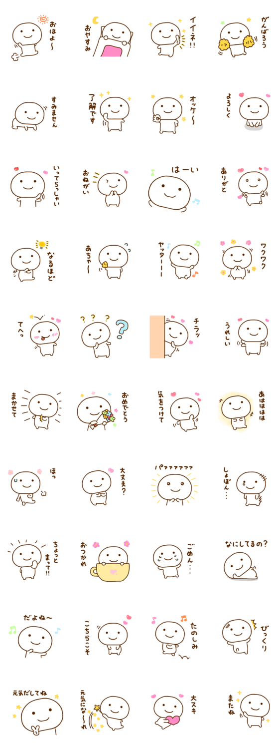 ゆる~く、カワイイ、笑顔で毎日頑張るスタンプです♪