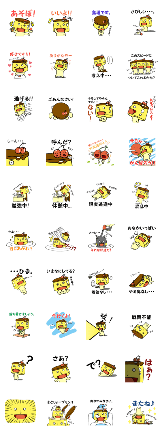 | スタンプ説明 | 謎のキャラクター【プリンさん】さっそうと登場!! 吸い込まれそうなその変わらない表情は ...癒される?かわいい?それとも変? |