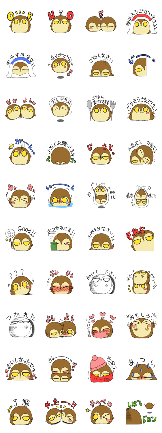 ぷくっとしたフクロウちゃん達のほのぼのとしたスタンプです!