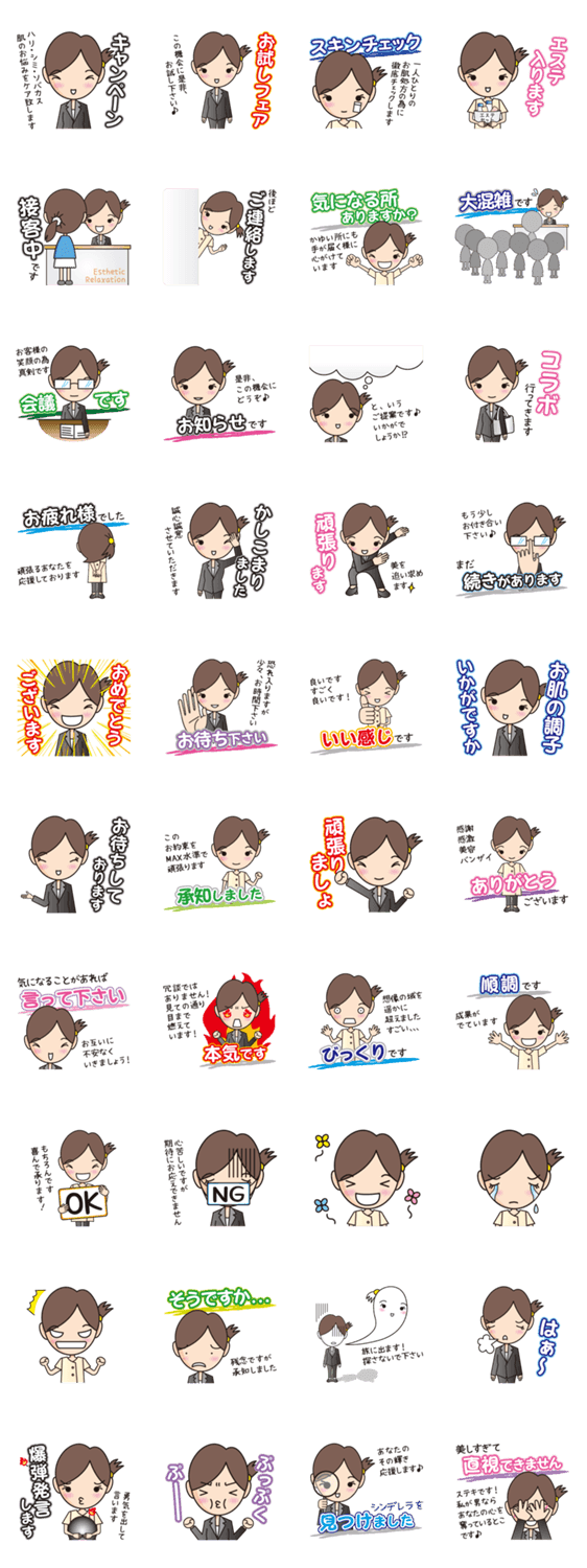 ゆるっと♪シリーズ第6弾「ゆるっとエステちゃん」が、美容に関するあいさつや日常会話を楽しんでいます!ゆるっと楽しんでスタンプ使っていただけるとうれしいです♪