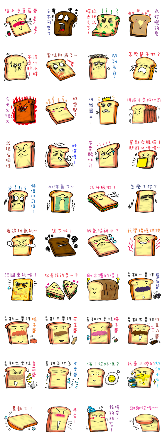 | スタンプ説明 | Cute Toast love sauce, very happy every day. so, don't worry , use these stickers, Express your emotions! |