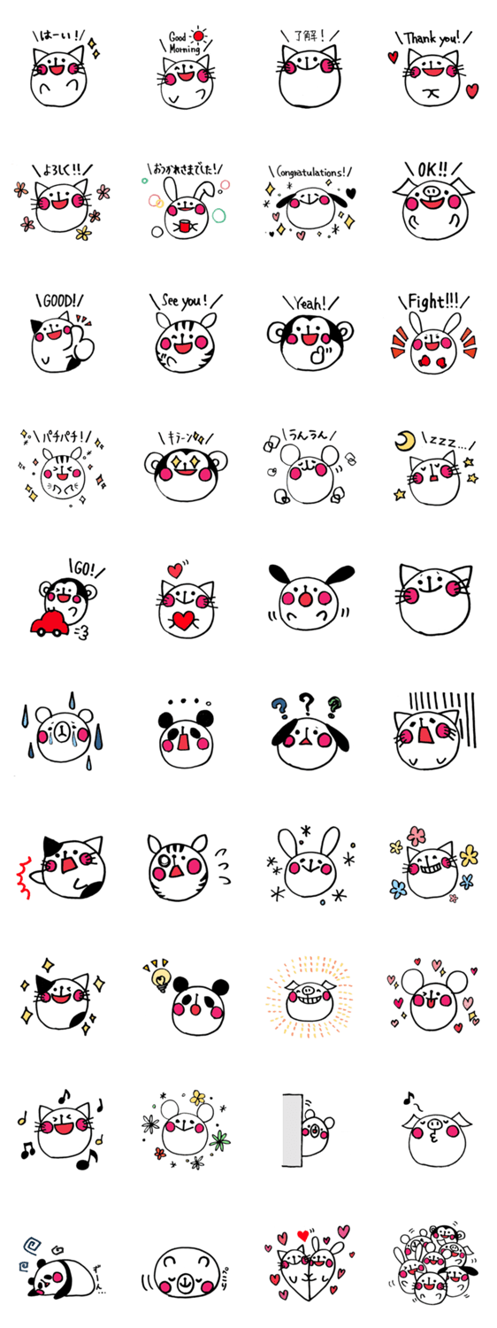 まるいねことどうぶつたちのスタンプです。第3弾です。まるねこ多めで、シンプルで使いやすい感じにしてみました。
