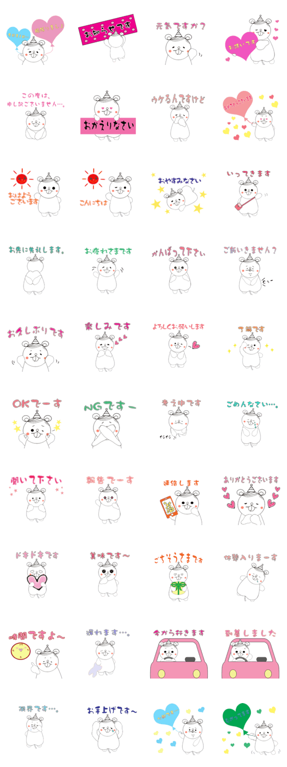 いつも舌が出ているワンちゃんのみるこ。 敬語を風船などにのせて☆ 年上の方などに使いやすいフレーズをパッと返信出来ます。