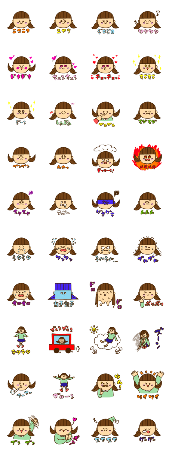 感情的な女の子の表情スタンプ。 擬音やオノマトペがメインです。