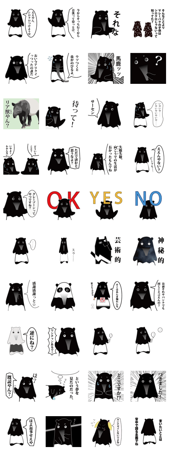 | スタンプ説明 | シロクロ動物でお馴染みのマレーバクが会話を楽しく演出。シロクロ動物がキミとZooっと一緒だ! |