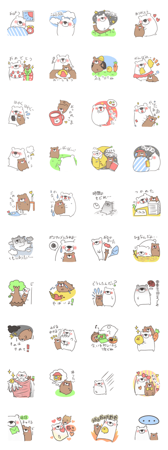 しろくまと仲間たちの、可愛いスタンプだよ。使いやすくて、面白いメッセージ付き。ぜひ、家族やお友達に送ってみてね。