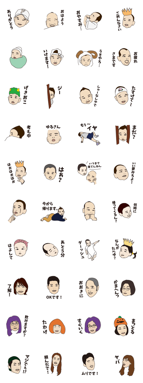 いっさくの1歳の誕生日を記念して。 一年間で覚えた表情をスタンプにした。