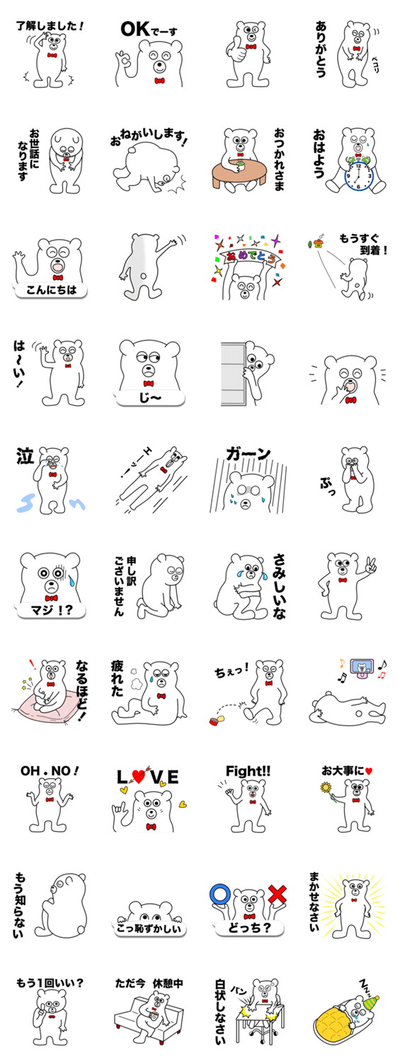 ゆる〜い、くまのキャラです。日常で使いやすい言葉を中心につくりました。
