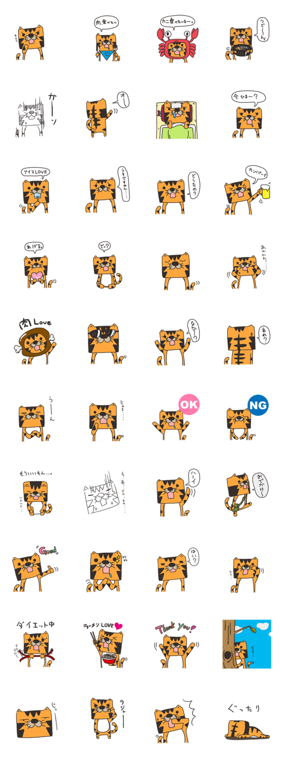 | スタンプ説明 | 4コマ漫画で人気のトラくんスタンプだよ。 楽しく使ってね〜。 |