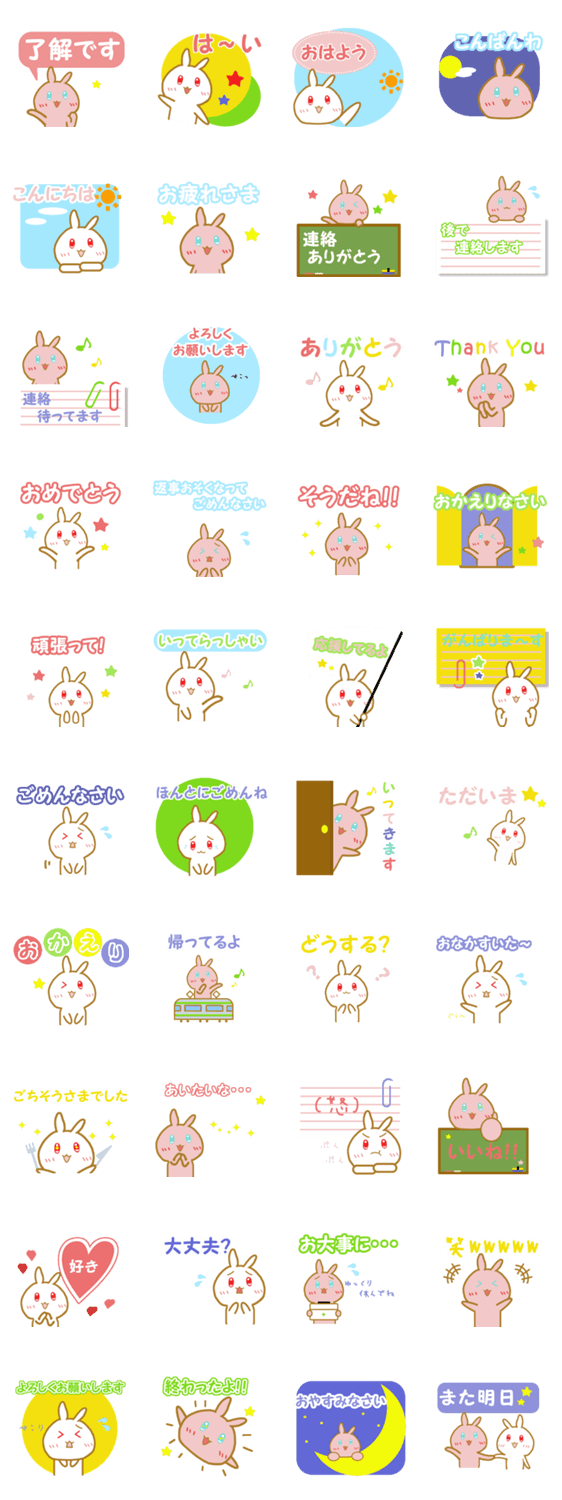 日常会話で使えるうさぎのかわいいスタンプです。