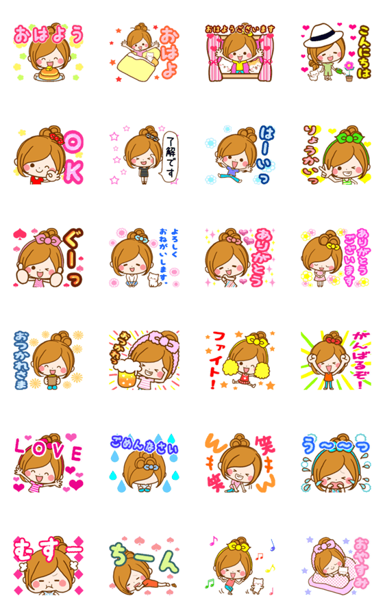 「ほのぼのカノジョ」の動くスタンプです!ゆるくてほのぼのした表情の可愛い女の子がカラフルに、たのしく動きます☆友達や家族、恋人やママ友にぜひ使ってみてください♪