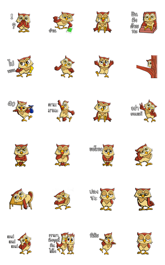 Sticker the animation,Owls playful mood with plenty of humorous quotes chatting merrity
