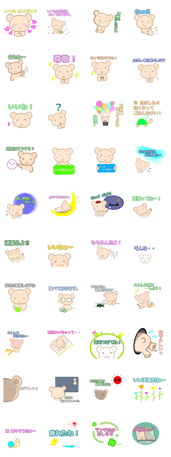 ぱすてるくまsan 1 と同様、日常的に使えるスタンプです。