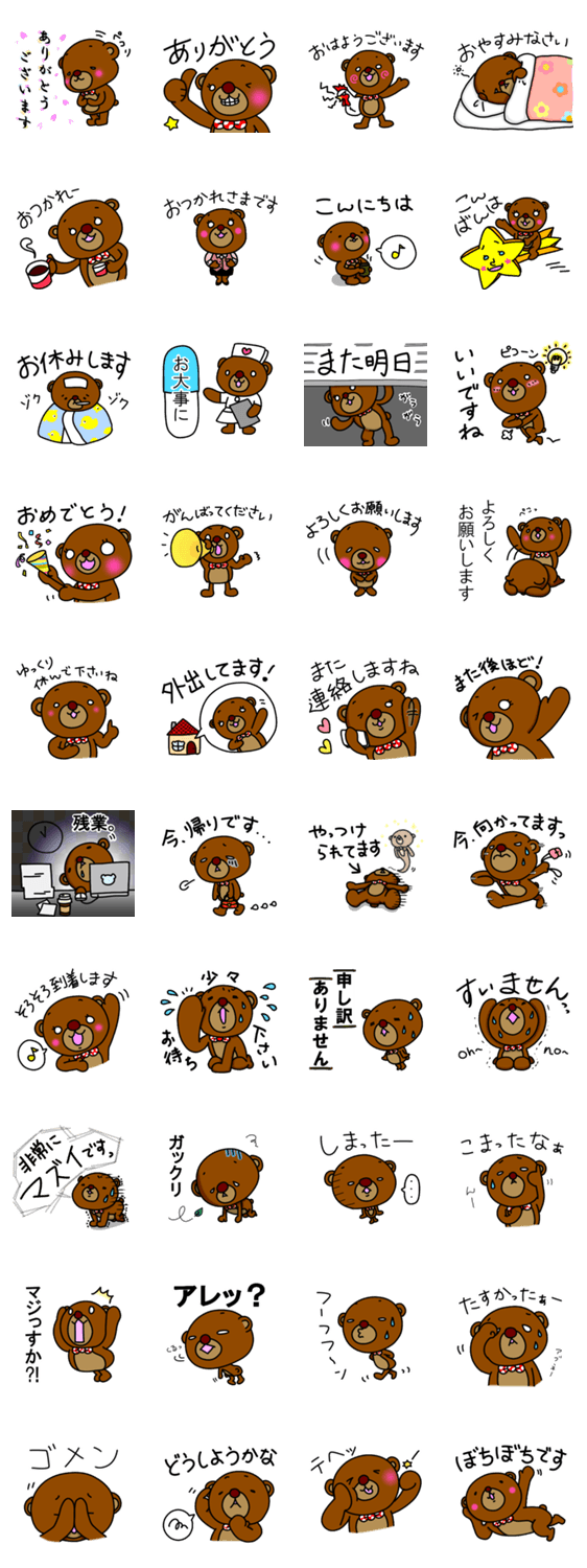 シロ目のベア子。第二弾!会社の同僚や友人にも使えるスタンプに仕上がってます!