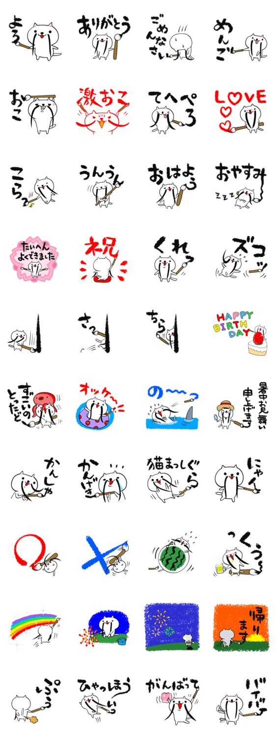 白ネコのあいうえお・・・ってるスタンプ