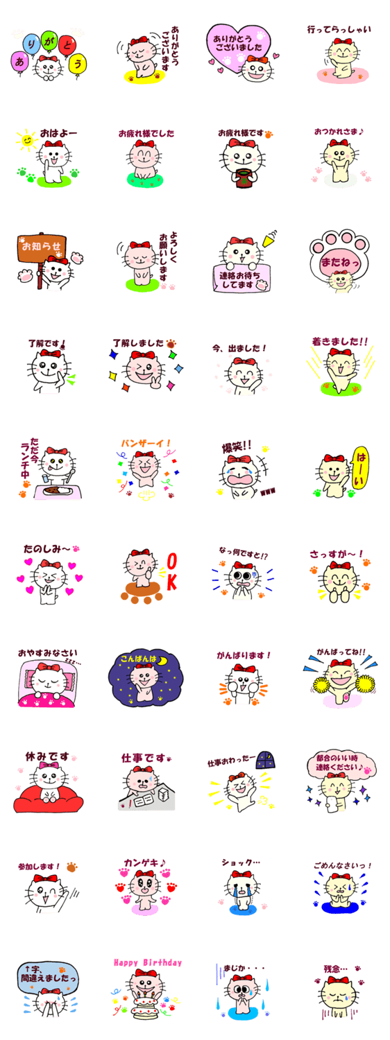 白ネコのあいうえお・・・ってるスタンプ