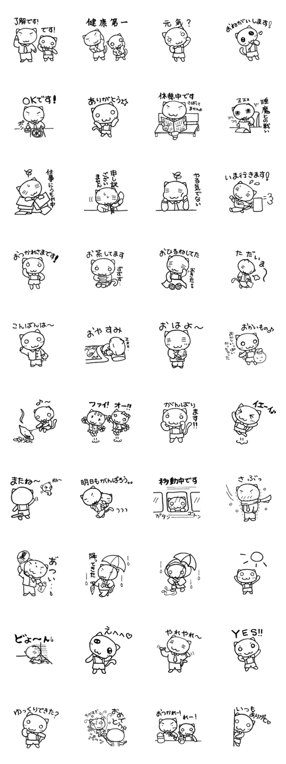 白ネコのあいうえお・・・ってるスタンプ