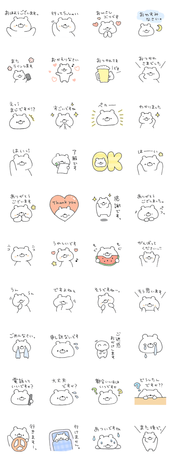 ほわくま。のスタンプ4です。今回はほぼ敬語。先輩・年上の方に…たくさん使ってください♪