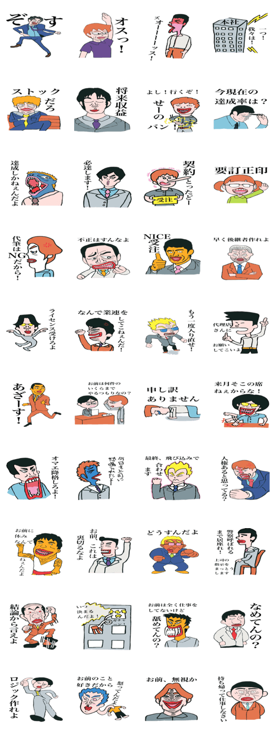 営業会社によくある光景をスタンプにしました。社内で使っている言葉があれば盛り上がるかも!?