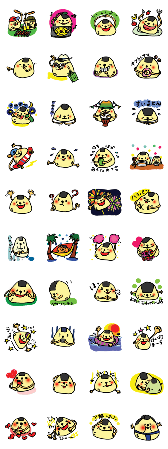 【おにぎりんちょ】第2弾!!夏に使いたいスタンプから、ご要望の多かった「ごめんね」などの日常会話までの盛りだくさんスタンプです!
