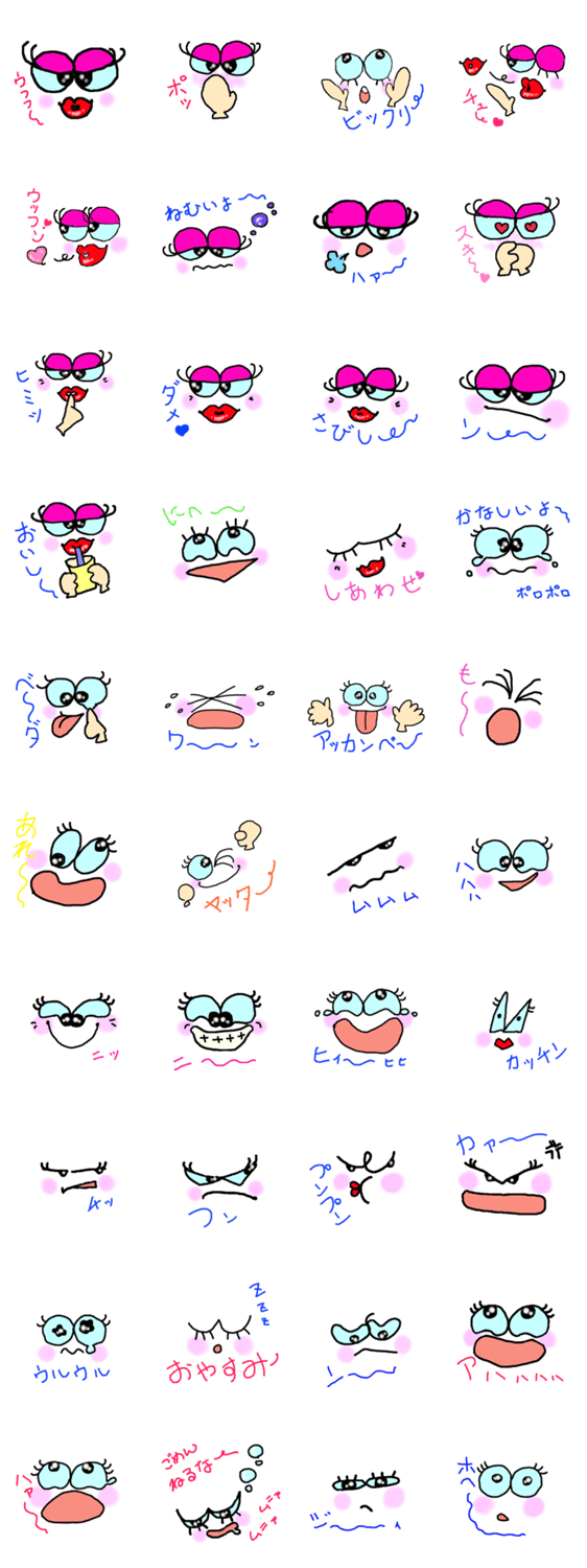 | スタンプ説明 | めだまで起動哀楽を表現したスタンプです 簡単で分かりやすいイラストなので使いやすいと思います 大好きな彼氏 旦那さんに送ってください |
