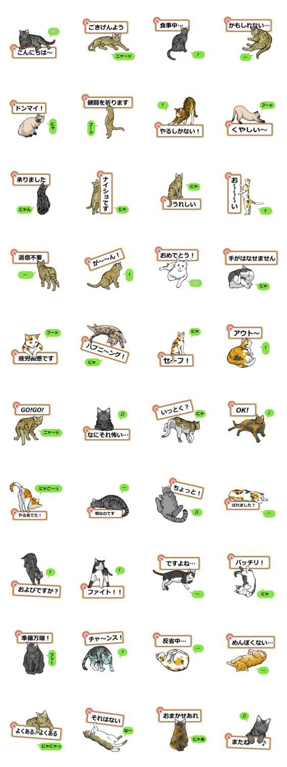 | スタンプ説明 | いろんな猫の集まる、楽しいメッセージボードスタンプです。 文字を大きくしました |