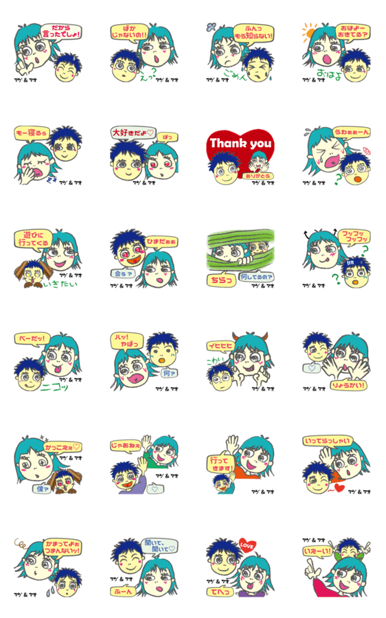 | スタンプ説明 | 動く!アニメーションスタンプです。ツンツンな女の子マグちゃんと草食彼のマオちん。待望の第2段は一緒に登場します!家族・カップル・友達同士、挨拶に最適です!! |