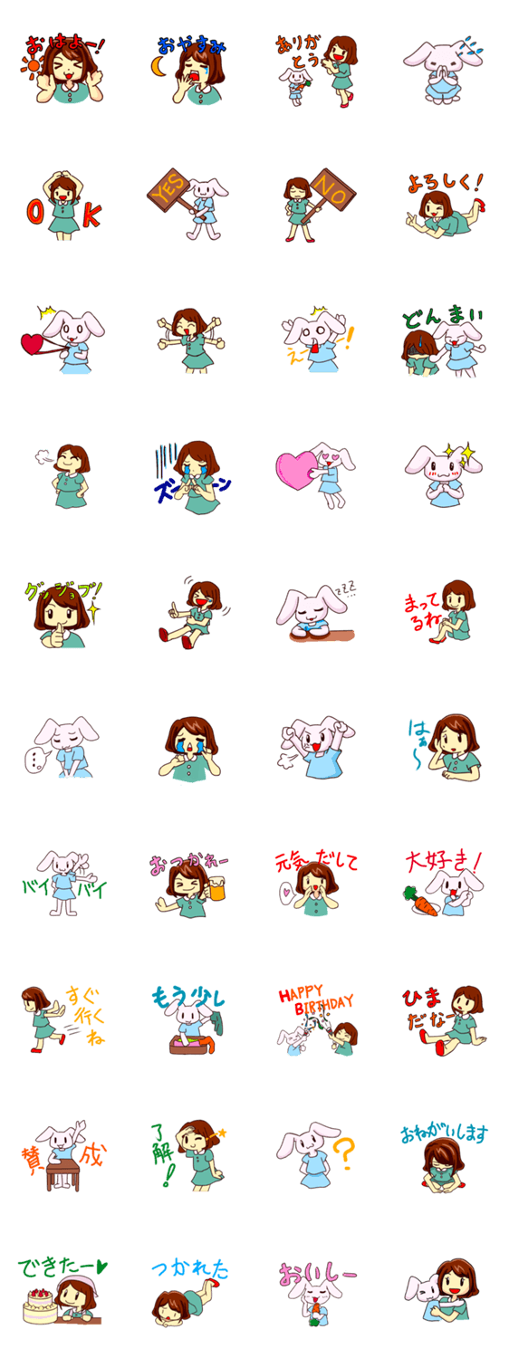うさぎのチョコタと仲の良いミキちゃんの日常を描いたスタンプです。かわいくもありちょっとシュールな2人の注目