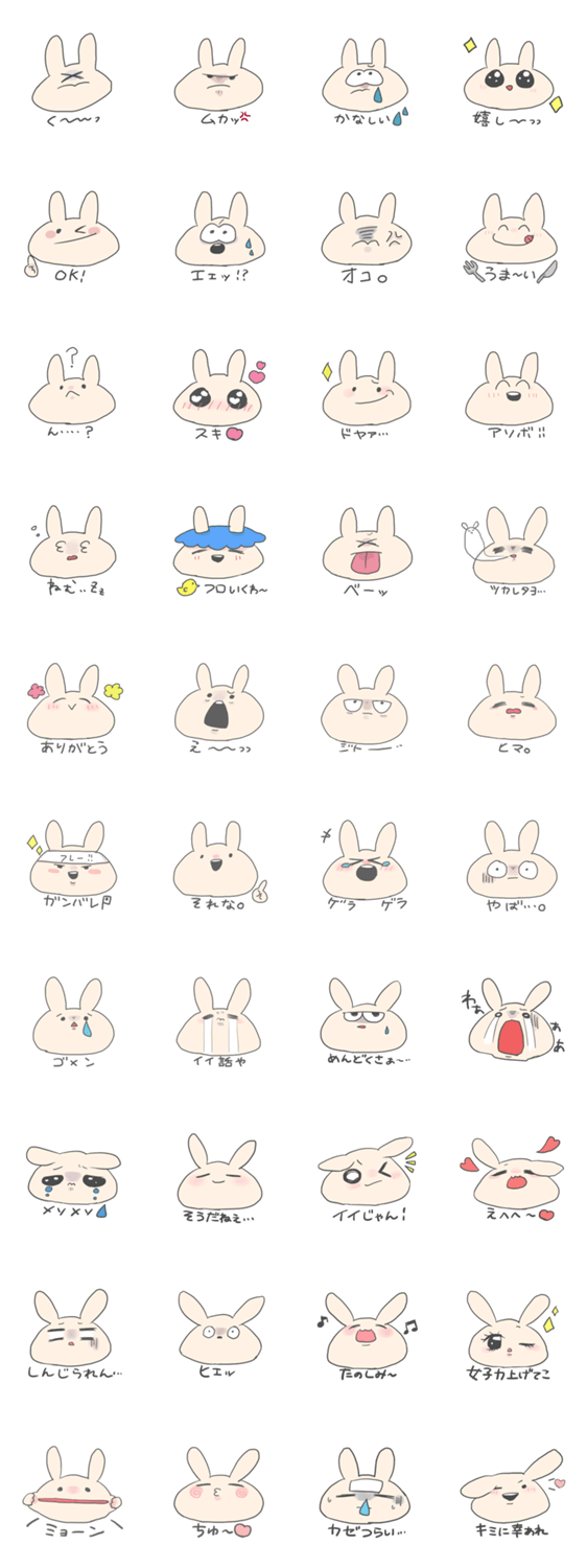 うさぎちゃんがいろんな気持ちやあいさつを表情で伝えるよ。