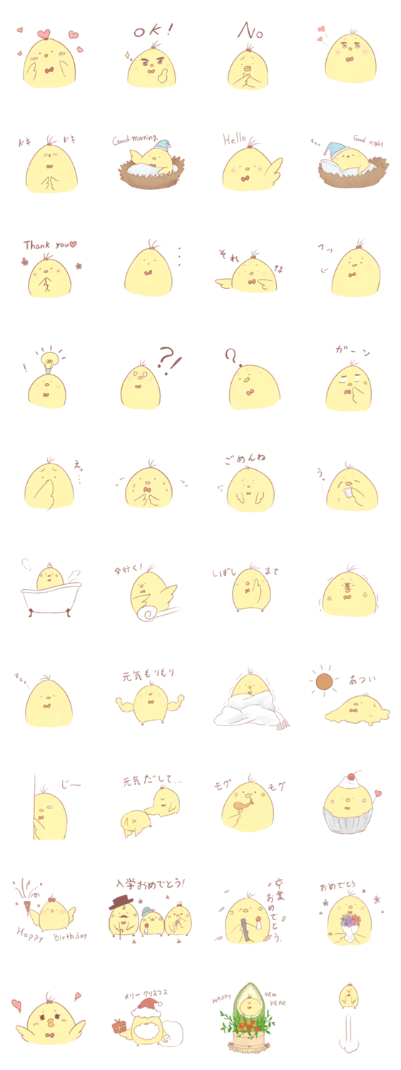 日常で使いやすく、誰にでもおくりやすい ゆるひよこ「ぴよみち」のスタンプ。