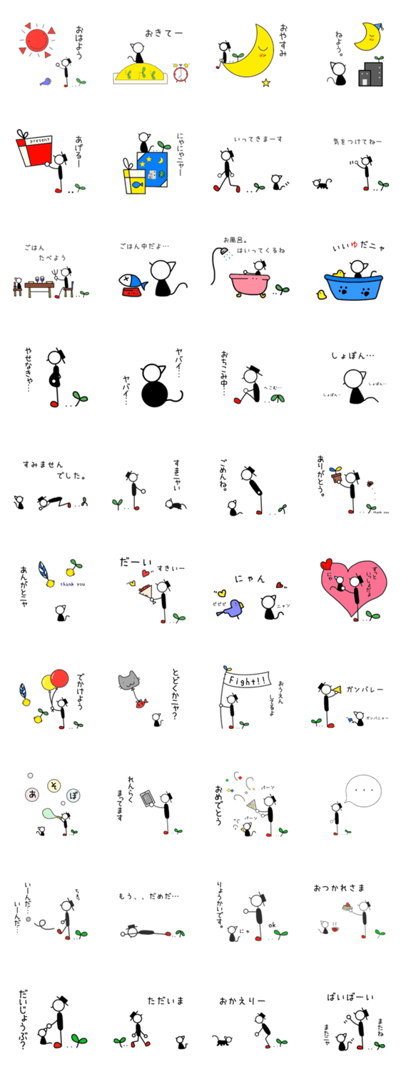 いつも仲良しのJrくんとクロネコのminiの何気ない日常のスタンプ。