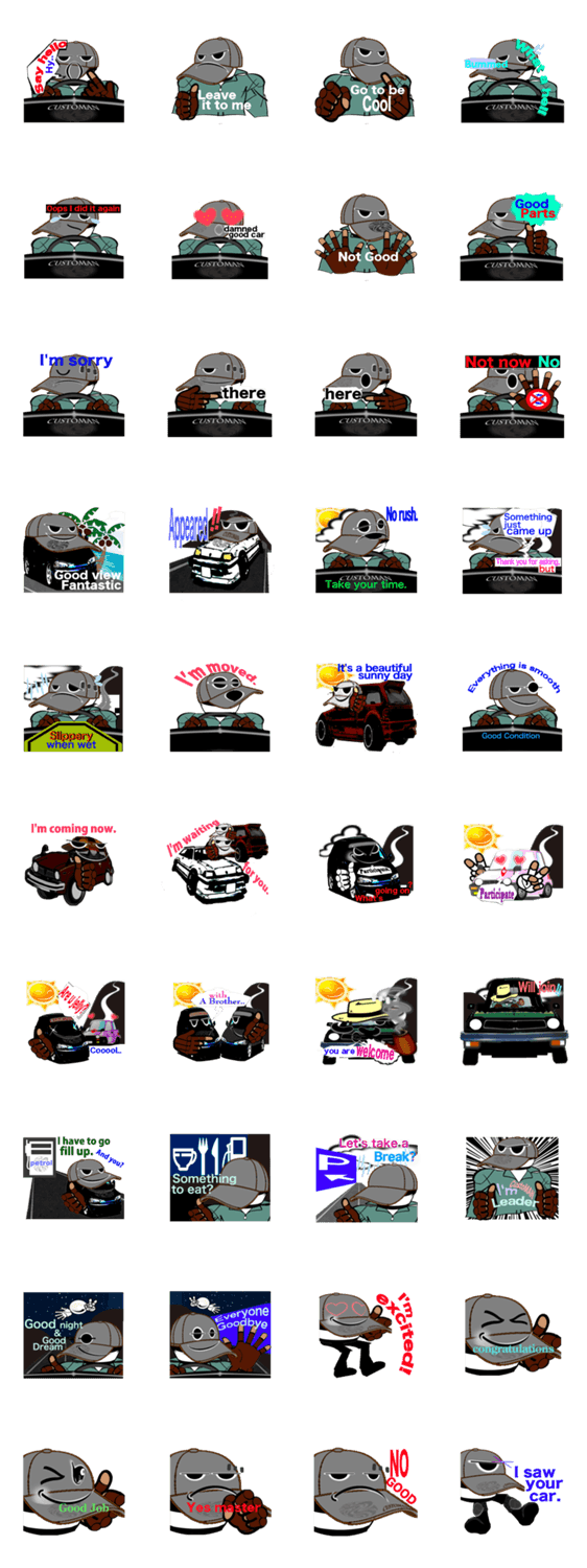 | スタンプ説明 | ドライブの先での待ち合わせ会話、簡単に出来事を報告・確認ができ相手に伝える事ができる 注)運転時使用禁止、絶対に車やバイクを止めて使用して下さい。 |