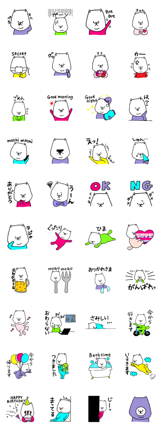 白ネコのあいうえお・・・ってるスタンプ