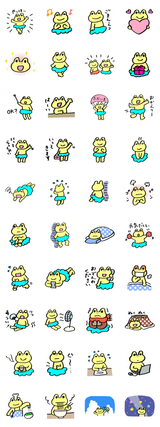 かわいいかえるの女の子「けろりーな」のスタンプ第2弾です。