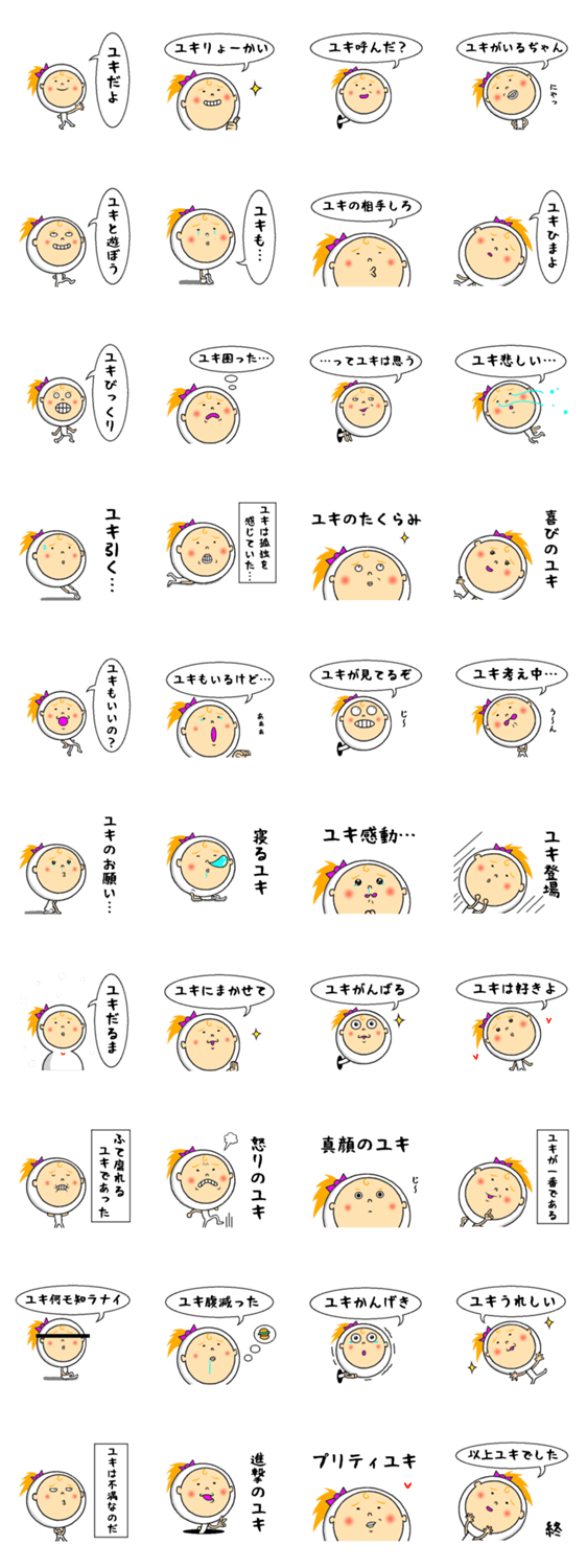 ○○の気持ち第19弾です。全国のゆきさん・ゆきこさん・ゆきえさん・ゆきなさんに捧げるユキ専用スタンプです。進撃の名字シリーズも展開中
