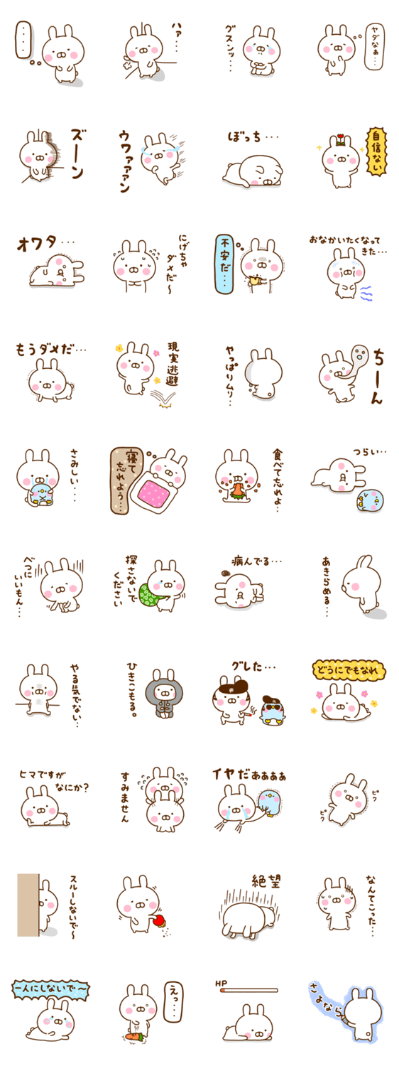 ゆる~く、カワイイ、毎日使えるうさぎのうさひなとぺんぺんのネガティブスタンプです♪