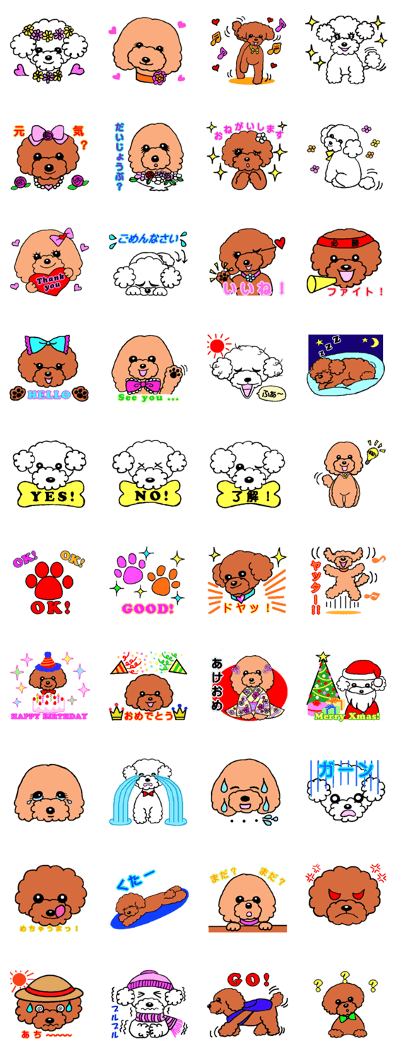 かわいいトイプードルたちがコミュニケーションのお手伝いをしますよ。 愛犬家もそうでない方もスタンプをたくさん使って楽しみましょう!