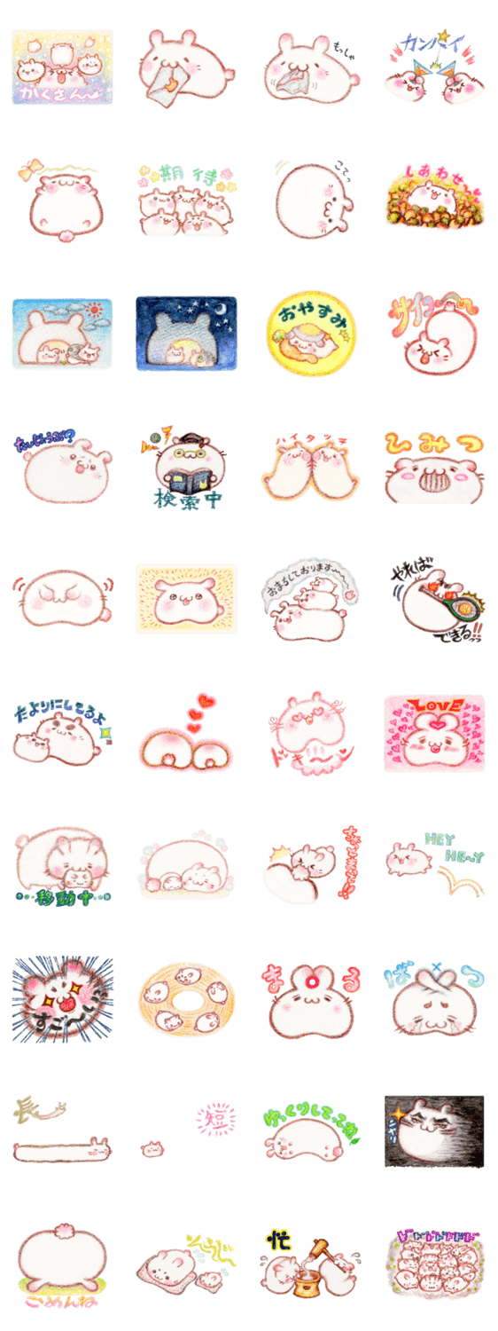 お餅のようにもっちりとしたウサギたちが、いろんな形になって楽しませようとがんばってます。ほとんどを手描きで仕上げました。