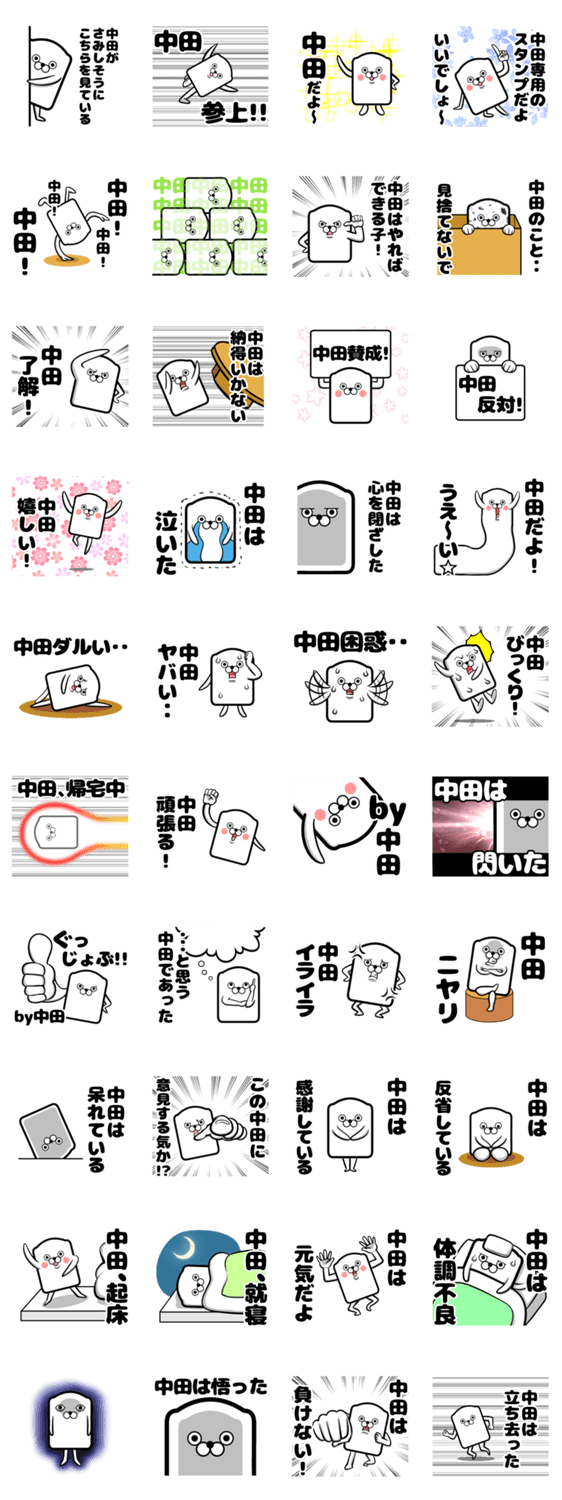 『私専用』シリーズ第43弾!!全国の中田(なかた、なかだ)さんにオススメのスタンプ。中田さんへプレゼントしても喜ばれますよ♪家族間で使用しても面白いです。