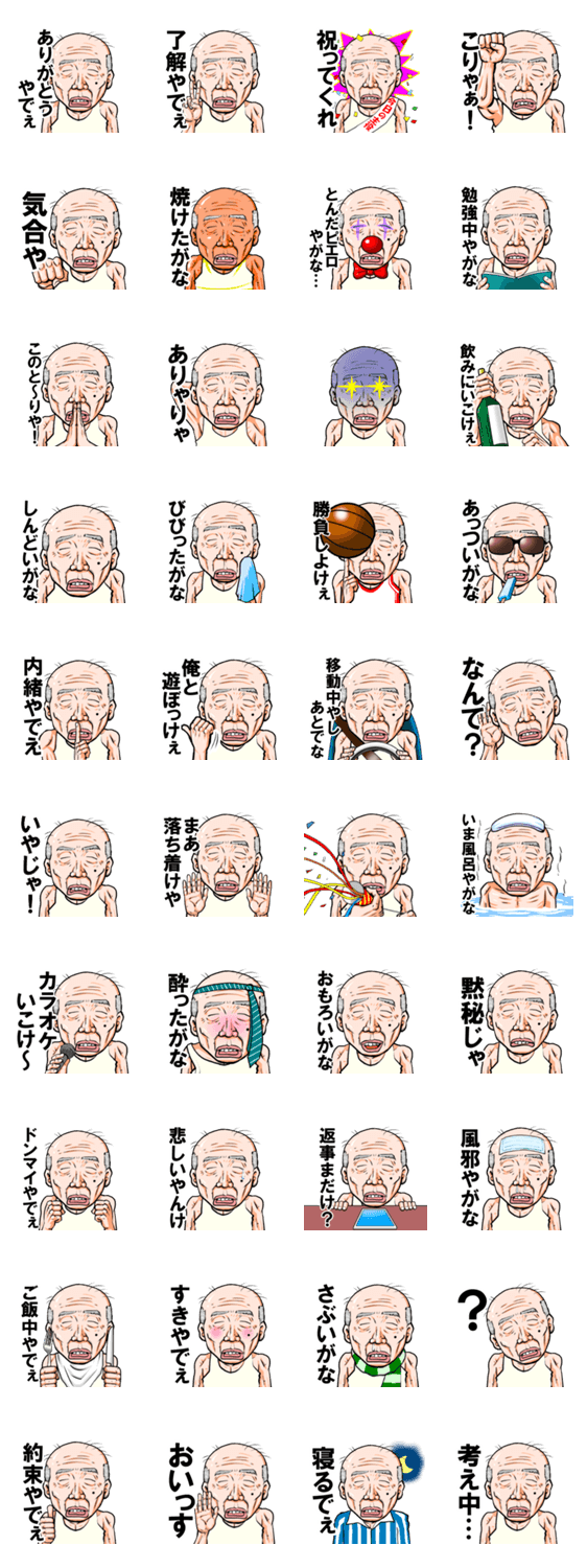 | スタンプ説明 | 人生をマイペースで楽しむよしおさん(82)のノホホ~ンとしたスタンプです。のんびりいこう♪ |