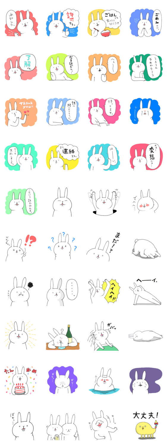 | スタンプ説明 | うさはしさんLINEスタンプ第二弾!あのうさはしさんがよりゆるくなって帰ってきました! 相変わらず、ふてぶてしく、そしてちょっとうざめ。 |