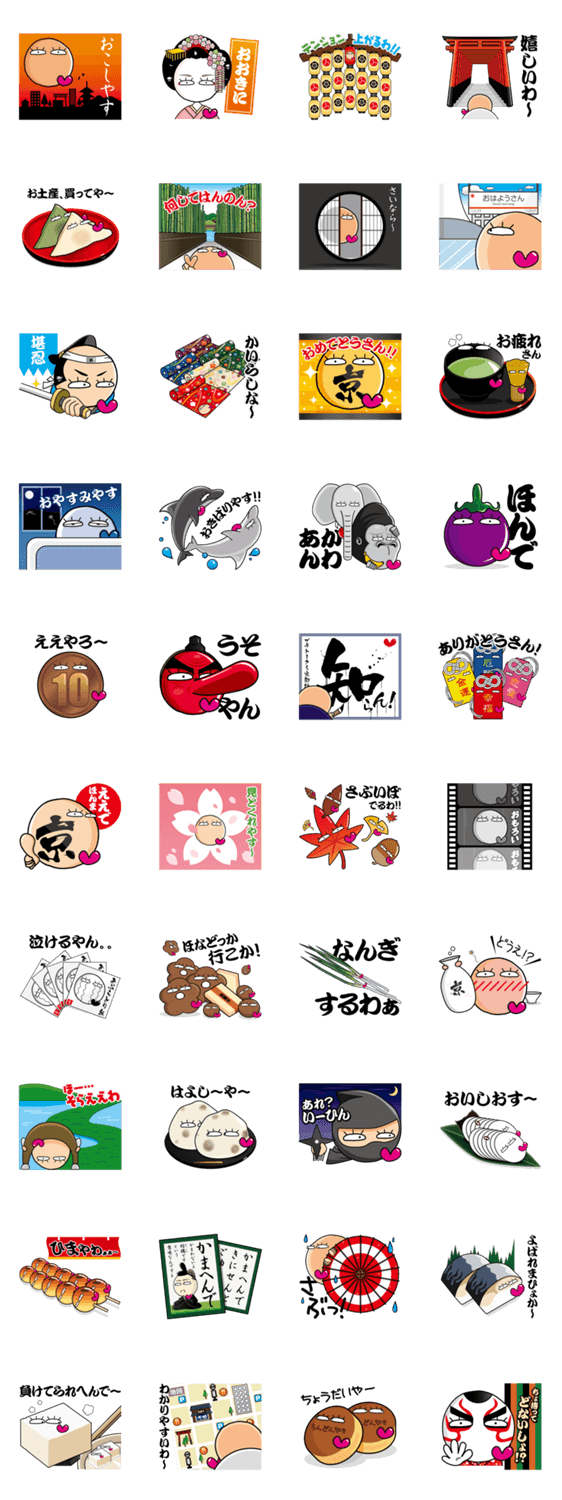 日常会話で使えそうな言葉をスタンプ化したプチトークの第2弾「京都編」言葉とは心を込めて初めて相手に伝わるもの。その心をハートマークで表現。