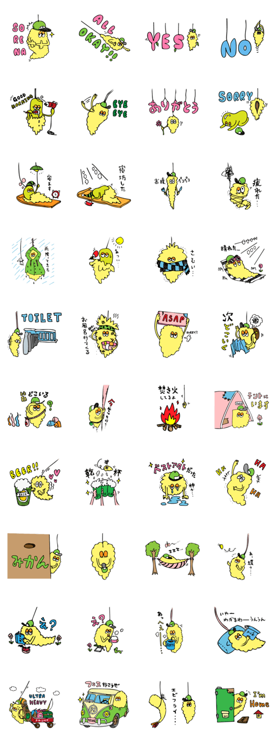 | スタンプ説明 | フェスとキャンプとアウトドアが大好きなミノムシくんのスタンプです。 |